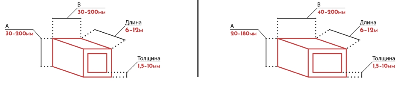 Diámetro exterior: 8 mm x 8 mm – 150 mm x 150 mm